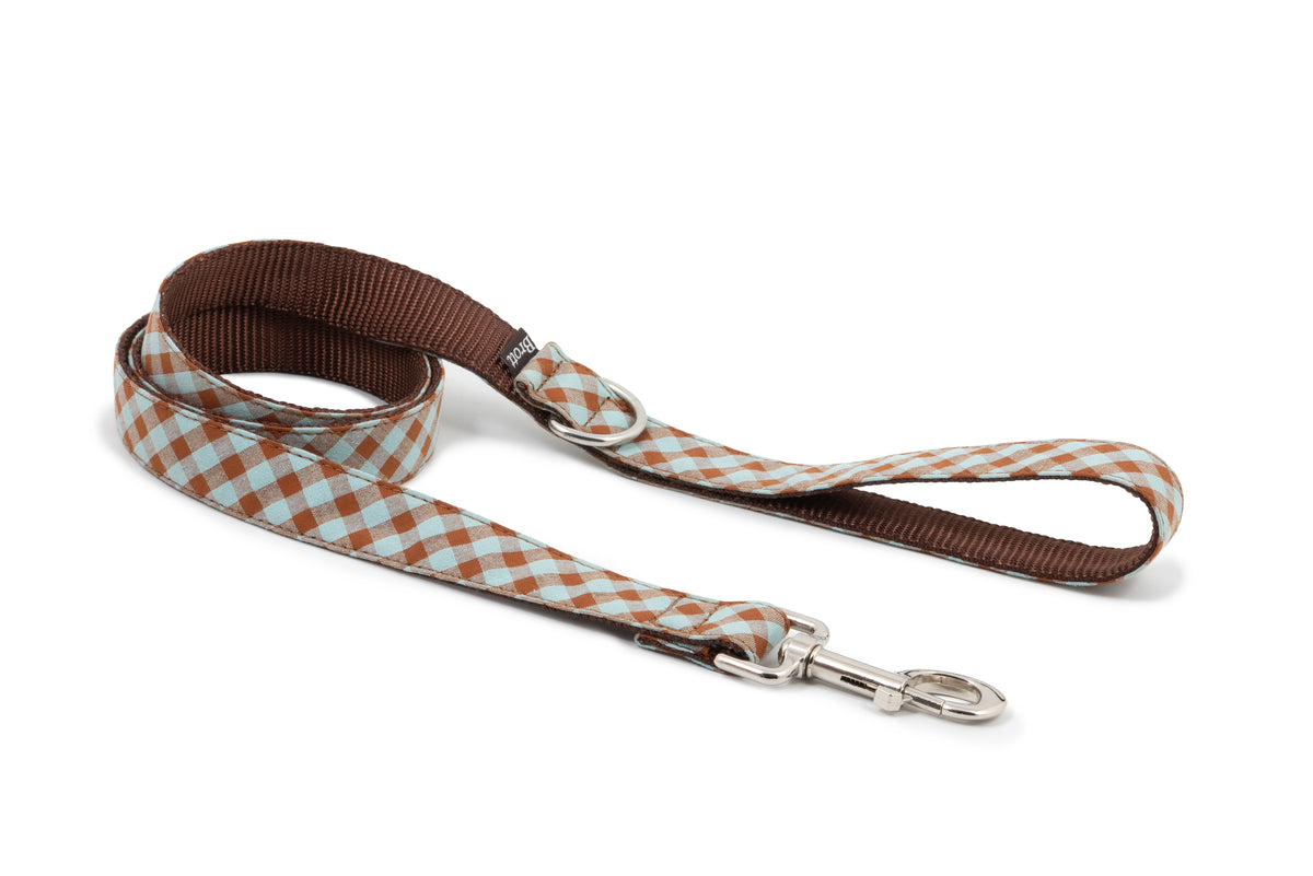 この春夏のトレンドにインスパイアされたマーチンゲールカラーは、柔らかなライトブルーとアースブラウンのチェック柄をモダンにアレンジ。