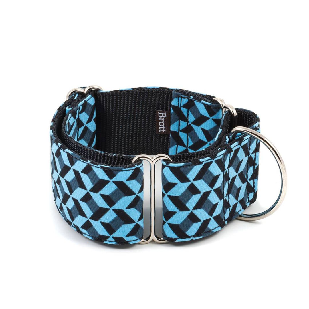 淡い青色を基調とした生地に黒の幾何学模様があしらわれたデザインは、洗練された印象で愛犬とのお散歩を特別な時間にしてくれます。